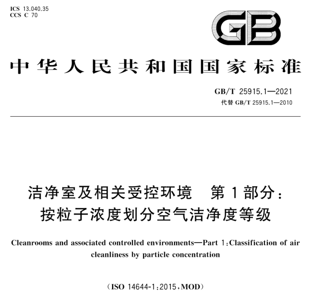 GB/T 25915《潔凈室及相關受控環境-1:空氣潔凈度等級》發布,3月1日起實施