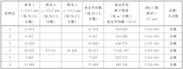 表中所有濃度都是累積濃度,例如ISO5.5 級,0.5μm 粒徑的11100 顆中,包括所有粒徑大于或等于該粒徑的粒子。